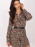 La robe chemise élégante de coupe droite est une proposition idéale pour les femmes qui aiment la mode avec du caractère au quotidien. Le motif animal ajoute à son expression prédatrice et moderne, tout en conservant l’élégance et le style féminin. Le modèle mini avec manches longues et col classique se présente de manière exceptionnellement élégante et polyvalente. La fermeture à boutons sur toute la longueur lui confère légèreté et caractère pratique, tandis que la ceinture amovible permet de souligner la taille et d’ajuster la robe à la silhouette. Fabriquée en polyester et élasthanne, elle assure confort et liberté de mouvement. Parfait pour les tenues quotidiennes, aussi bien avec des bottines qu’avec des bottes élégantes.