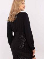 Une élégante robe crayon de soirée, parfaite pour des occasions spéciales telles que des fêtes ou des sorties en soirée. La robe est fabriquée dans un mélange de polyester et d’élasthanne de haute qualité, assurant un confort de port et un ajustement parfait à la silhouette. Sa longueur jusqu’au genou met en valeur les jambes, et son décolleté cache-cœur donne à la tenue un caractère féminin. Le haut de la robe est doté de longues manches bouffantes terminées par des poignets ornés de paillettes, ajoutant une touche d’élégance. De la taille vers le bas, la robe scintille de paillettes, créant un look spectaculaire et raffiné. Modèle doublé pour plus de confort et pour éviter la transparence. Une proposition exceptionnelle pour les femmes qui souhaitent allier élégance et éclat lors de chaque événement important.