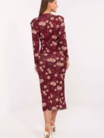 Une élégante robe crayon est le choix idéal pour des occasions spéciales. Fabriqué à partir d’un mélange agréable au toucher de viscose et de polyester, il se pose magnifiquement sur la silhouette, mettant en valeur les formes féminines. Le modèle a une longueur midi et des manches longues, ce qui lui confère classe et élégance. À l’avant, il y a une fente spectaculaire qui atteint la cuisse, mettant subtilement en valeur la jambe et ajoutant un caractère sensuel à l’ensemble. Le décolleté cache-cœur affine visuellement le cou et met en valeur le décolleté, tandis que les plis décoratifs avec une garniture en métal ajoutent une touche élégante qui attire le regard. La robe à motif floral sera parfaite pour les fêtes, les réceptions et les occasions spéciales, alliant féminité, élégance et confort en un seul.