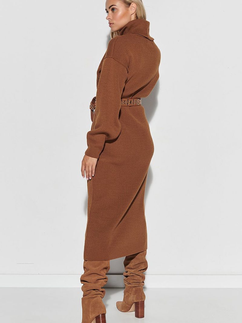 Une robe longue pour femme avec un col roulé et des poches à l’avant est un choix parfait pour les femmes de grande taille qui aiment mettre en valeur leurs atouts. S’associe parfaitement aux bottes et aux chaussures de sport. La robe est entièrement réalisée en acrylique, qui enveloppe le corps, soulignant les formes féminines. C’est une base classique pour de nombreuses stylisations différentes. Vous pouvez l’attacher avec une ceinture ou la porter librement. S’accorde avec de nombreux accessoires qui renforcent le climat d’un style donné.