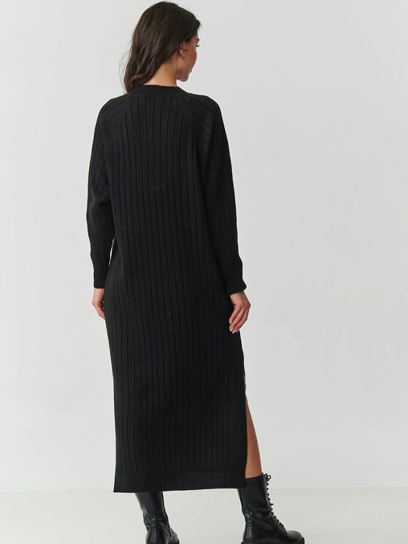Misez sur une élégance exceptionnelle et un confort maximal! Cette longue robe pull à maille côtelée est une proposition idéale pour les jours plus frais, alliant un style intemporel et un confort dans lequel vous vous sentirez féminine et à la mode. Fabriquée à 100% en acrylique de haute qualité, elle est douce, agréable au toucher et facile à entretenir. Sa coupe ample avec un décolleté en V met joliment en valeur la silhouette, tandis que les fentes pratiques sur les côtés ajoutent de la légèreté et de la liberté de mouvement. La robe se marie parfaitement aussi bien avec des bottines élégantes qu’avec des chaussures plus lourdes de style militaire, créant des styles allant du décontracté au plus audacieux. Disponible dans plusieurs couleurs sobres : noir, cappuccino, chocolat, gris anthracite chiné et gris chiné, vous pourrez facilement choisir la teinte idéale pour votre style. C’est une robe qui conviendra aussi bien pour tous les jours, au travail que pour les soirées, vous aurez toujours un look à la mode et féminin.