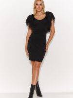 Découvrez votre style unique avec cette mini robe noire ajustée très sensuelle. Cette création étonnante, ornée d’une garniture dorée, est l’option parfaite pour les sorties en soirée. Son dos ouvert et ses volants remarquables au lieu des manches traditionnelles ajoutent au charme inhabituel de la robe. L’encolure légèrement arrondie sur le devant met en valeur le cou délicatement féminin, créant ainsi un ensemble harmonieux. Alliant élégance et sensualité, cette robe est un choix sensationnel pour les femmes sûres d’elles et prêtes à voler la vedette à tout moment. Portez-la avec des bijoux fins et envoûtez-la.