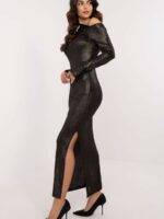 Une élégante robe de soirée de coupe crayon, parfaite pour les sorties et les fêtes spéciales. Fabriquée à partir d’un matériau de haute qualité avec un mélange de polyester et de viscose, avec une texture légèrement ornée qui donne de l’élégance à la tenue. La longueur maxi et la silhouette ajustée mettent subtilement en valeur la silhouette féminine. L’encolure asymétrique et les coussins cousus sur les épaules donnent à la robe un caractère marqué, tandis que les manches longues avec des poignets munis d’une ouverture pour le pouce offrent un look moderne et intrigant. Les plis supplémentaires sur le tissu ajoutent de l’élégance, créant un style unique sans fermeture.