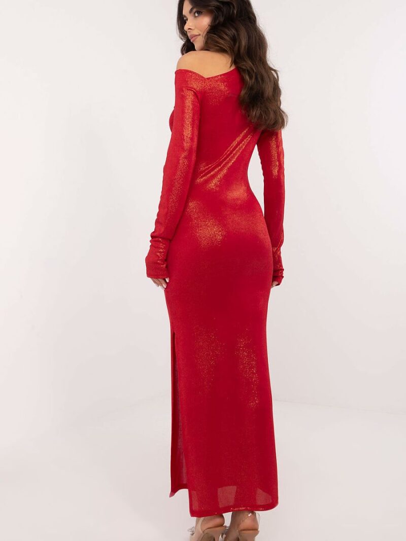 Une élégante robe de soirée de coupe crayon, parfaite pour les sorties et les fêtes. Fabriquée à partir d’un matériau de haute qualité avec un mélange de polyester et de viscose, avec une texture légèrement ornée qui donne à la création une touche d’élégance. La longueur maxi et la silhouette ajustée mettent en valeur subtilement la silhouette féminine. L’encolure asymétrique et les coussins cousus sur les épaules confèrent à la robe un caractère marqué, tandis que les longues manches avec des poignets dotés d’une ouverture pour le pouce offrent un look moderne et intrigant. Les plis supplémentaires sur le tissu ajoutent de l’élégance, créant un style unique sans fermeture.