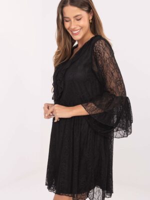 La magnifique robe en dentelle évasée est une proposition qui mettra en valeur la féminité et ajoutera du charme à chaque tenue. Fabriquée en dentelle délicate avec un motif ajouré et ajout de nylon et d’élasthanne, elle s’ajuste magnifiquement à la silhouette et garantit un confort de port. Le modèle est doublé pour assurer confort et finition élégante. Le décolleté en V avec un nœud met subtilement en valeur le cou, tandis que le jabot sur le devant et les manches 3/4 à volants ajoutent un caractère romantique et stylé. Cette robe mini sera parfaite pour les fêtes, les réceptions, le réveillon du Nouvel An ou d’autres occasions spéciales, créant une tenue éblouissante et pleine de charme.