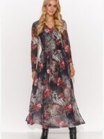 Cette robe longue unique en tissu léger est un must dans votre garde-robe. L’encolure triangulaire et les manches longues confèrent à la robe un style décontracté et une utilisation pratique au quotidien. Les fentes latérales, quant à elles, ajoutent de la légèreté. La doublure en viscose cousue, qui couvre discrètement les zones stratégiques, constitue un atout important. La matière extérieure est à moitié transparente, avec des imprimés. Cette création est disponible en cinq variantes, variant en couleur et en motif. Chacune se combine parfaitement avec des bottes ou des bottines et un manteau élégant. Cette robe vous donnera un sentiment d’unicité et conviendra à de nombreuses occasions, d’un dîner romantique à une promenade spontanée en ville.