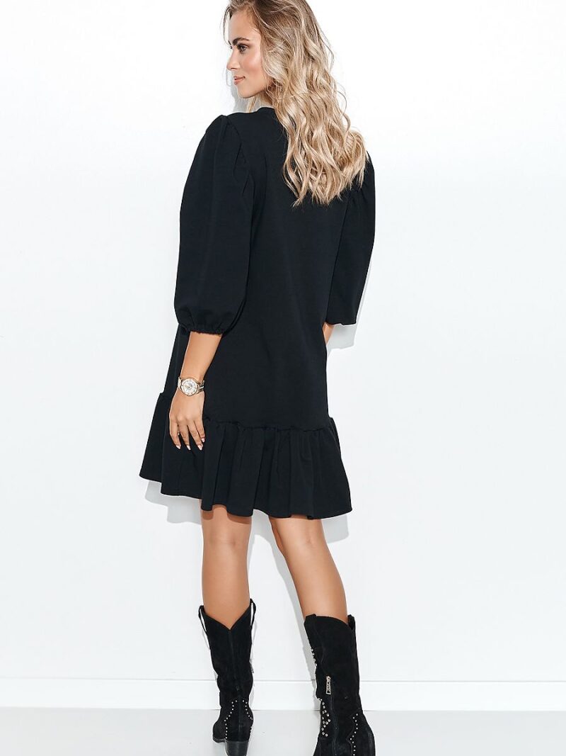 Robe romantique faite d’un sweat-shirt en maille fine et aérée. Extrêmement agréable à porter. Recommandé surtout pour les silhouettes droites. La robe a des manches légèrement bouffantes terminées par un passepoil et une encolure ronde. C’est pourquoi les femmes ayant une petite poitrine en seront particulièrement ravies. Une délicate application décorative est cousue sur le devant de la robe. Le bas de la robe est terminé par un léger volant. La robe ne couvre pas le corps, est très confortable, vous pouvez donc confortablement passer toute la journée dedans.