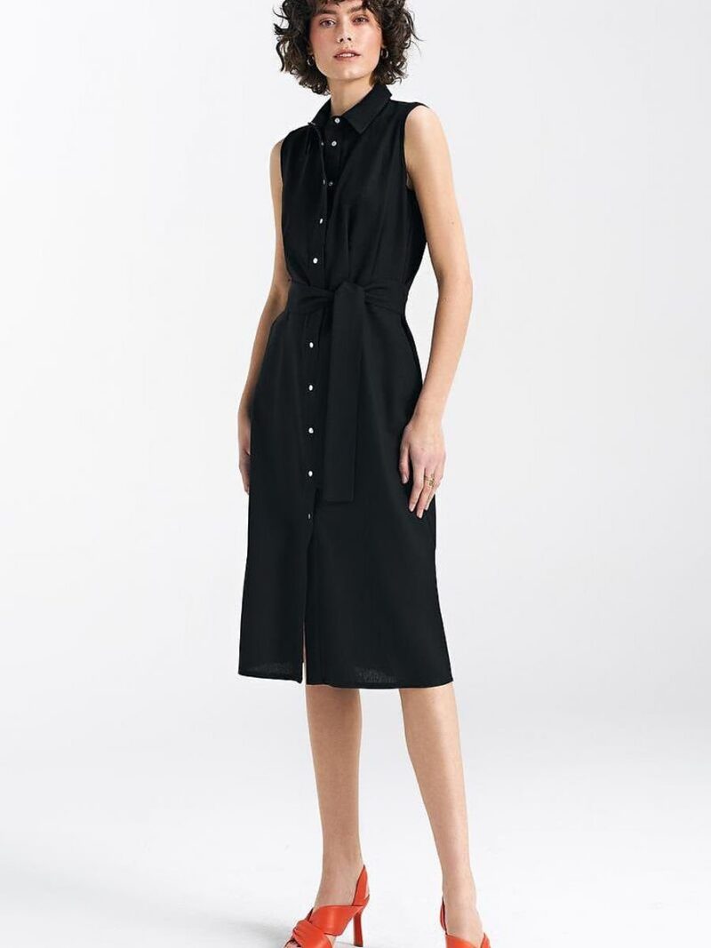 Une robe de coupe régulière, de type chemisier, fabriquée à partir d’un mélange de viscose, de lin et de coton, est le parfait mélange d’élégance et de confort. Elle possède un col classique et est sans manches, ce qui lui donne légèreté et style. La fermeture à boutons-pression argentés ajoute une touche moderne et facilite l’enfilage. Sa longueur midi en fait une robe idéale pour différentes occasions, qu’elles soient formelles ou décontractées. Les poches classiques ajoutent de la fonctionnalité, et la ceinture incluse permet de souligner la taille. La robe n’a pas de doublure, ce qui augmente le confort de port, surtout lors des journées plus chaudes.