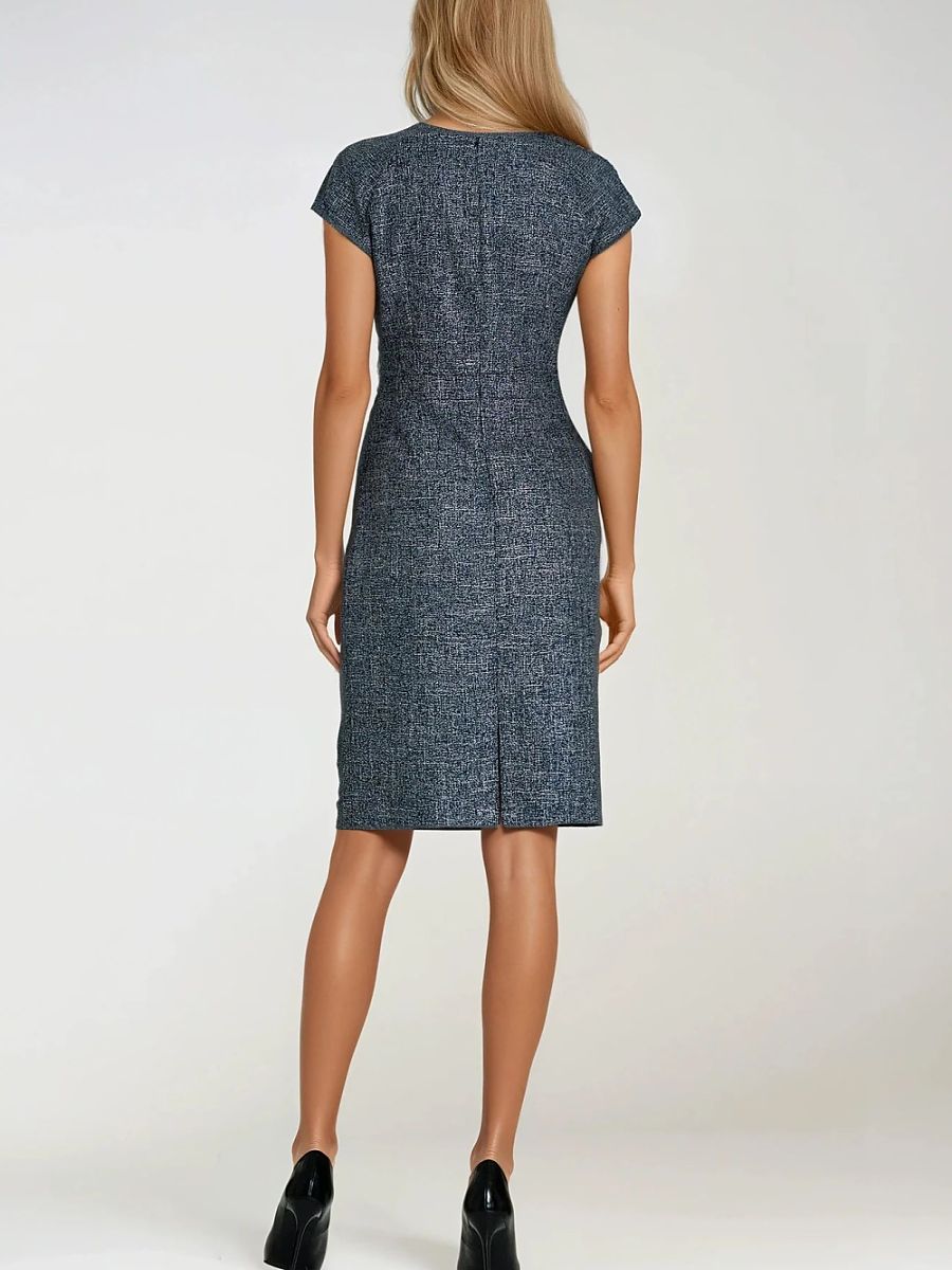 Robe รฉlรฉgante pour femmes ร coupe ajustรฉe, fabriquรฉe dans un tissu ร texture chinรฉe et couleur irrรฉguliรจre, lui donnant un caractรจre moderne. Le modรจle a un dรฉcolletรฉ rond et des manches de type capuchon, subtilement couvrant les รฉpaules. La longueur jusqu’aux genoux et la partie infรฉrieure crayon mettent en valeur la silhouette, donnant ร la robe une coupe classique et รฉlรฉgante. La robe se ferme ร l’arriรจre avec une fermeture รฉclair, et des plis dรฉcoratifs se trouvent au niveau du dรฉcolletรฉ et de la taille, ajoutant une touche d’รฉlรฉgance. Parfaite pour les occasions formelles et les tenues de soirรฉe.