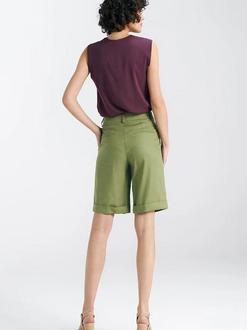 Des shorts à coupe décontractée, fabriqués dans un mélange de viscose, de lin et de coton, alliant confort et style. Ils se caractérisent par une taille moyenne et des jambes droites qui arrivent au-dessus du genou, avec des ourlets élégants. La fermeture à glissière et le bouton à l’avant assurent un port confortable. Les poches avant classiques et les poches arrière factices ajoutent une apparence classique et une fonctionnalité aux shorts. Parfaits pour les journées estivales, ces shorts seront un choix idéal pour les sorties décontractées ainsi que pour les occasions plus formelles.