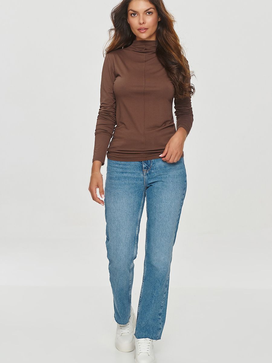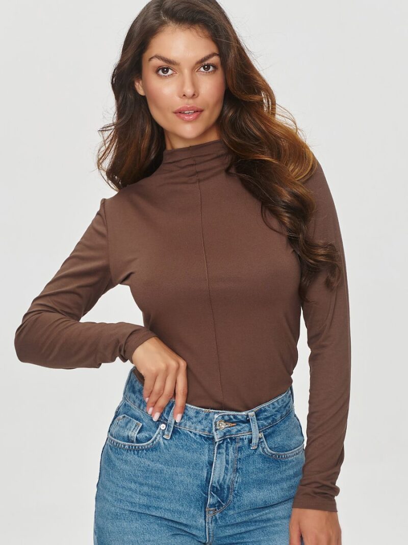 Le chemisier universel pour femme en viscose légère et respirante est un classique de la garde-robe automne-hiver. Le modèle a un col roulé et des manches longues pour assurer la fonctionnalité. La couture sur le devant du chemisier lui ajoute de l’originalité et du caractère unique. Le modèle est légèrement ajusté mais ne gêne pas les mouvements grâce au matériau élastique. Sa forme simple est un excellent complément à de nombreuses tenues, à la fois décontractées et plus formelles. Modèle idéal pour les femmes appréciant le mélange de confort, de fonctionnalité et d’intemporalité.