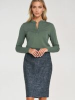 Chemisier รฉlรฉgant pour femme, ajustรฉ pour mettre en valeur la silhouette. Fabriquรฉ en matรฉriau รฉlastique avec du spandex, offrant confort et libertรฉ de mouvement. Ce modรจle a un col polo avec un col montant et des manches longues, lui donnant un caractรจre sportivement รฉlรฉgant. Le chemisier est boutonnรฉ jusqu’ร la moitiรฉ, permettant d’ajuster la profondeur du dรฉcolletรฉ et d’adapter le style ร l’occasion. Sa coupe polyvalente convient aussi bien pour des tenues dรฉcontractรฉes que plus sophistiquรฉes.