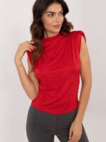 Chemisier élégant parfait pour les occasions formelles, pour le travail, ainsi que pour les fêtes. Fabriqué à partir d’un mélange de polyester et d’élasthanne de haute qualité, il garantit un confort de port et un ajustement parfait à la silhouette. Il est doté de coussinets aux épaules qui lui confèrent structure et élégance, soulignant subtilement la ligne des épaules. Le chemisier a une longueur standard et pas de manches, ce qui lui donne un caractère moderne et léger. L’encolure ronde s’harmonise parfaitement avec l’ensemble, et les ornements en strass répartis sur toute la surface du tissu lui ajoutent éclat et raffinement. C’est le choix parfait pour les femmes qui apprécient le style et l’élégance.