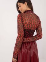 Chemisier élégant et sexy en résille, parfait pour toute occasion. La coupe ajustée met en valeur la silhouette, et la résille délicate ajoute du mystère. Le col roulé protège du froid et ajoute de l’élégance. Les manches longues assurent confort et élégance. Le motif animal donne au chemisier un caractère sauvage et vous démarquera de la foule. Le tissu élastique s’adapte au corps, offrant une liberté de mouvement totale. Le chemisier est transparent. Le mannequin porte un haut noir.