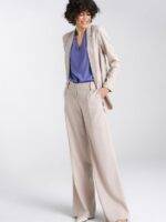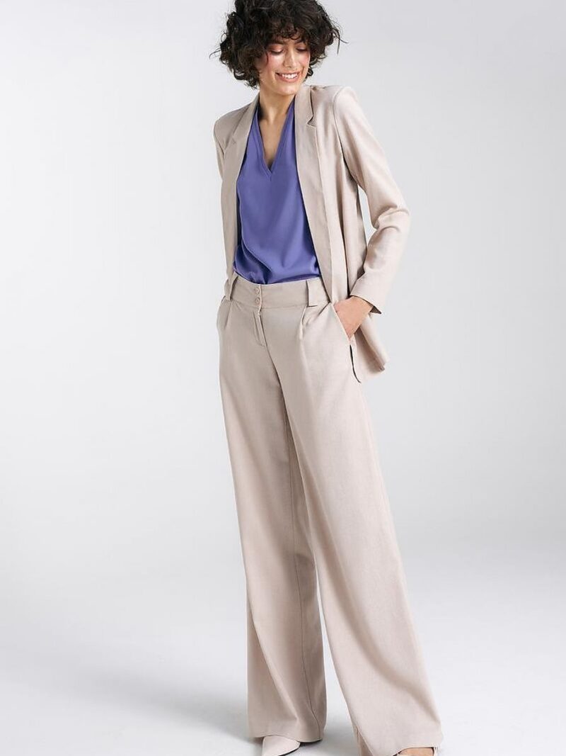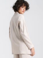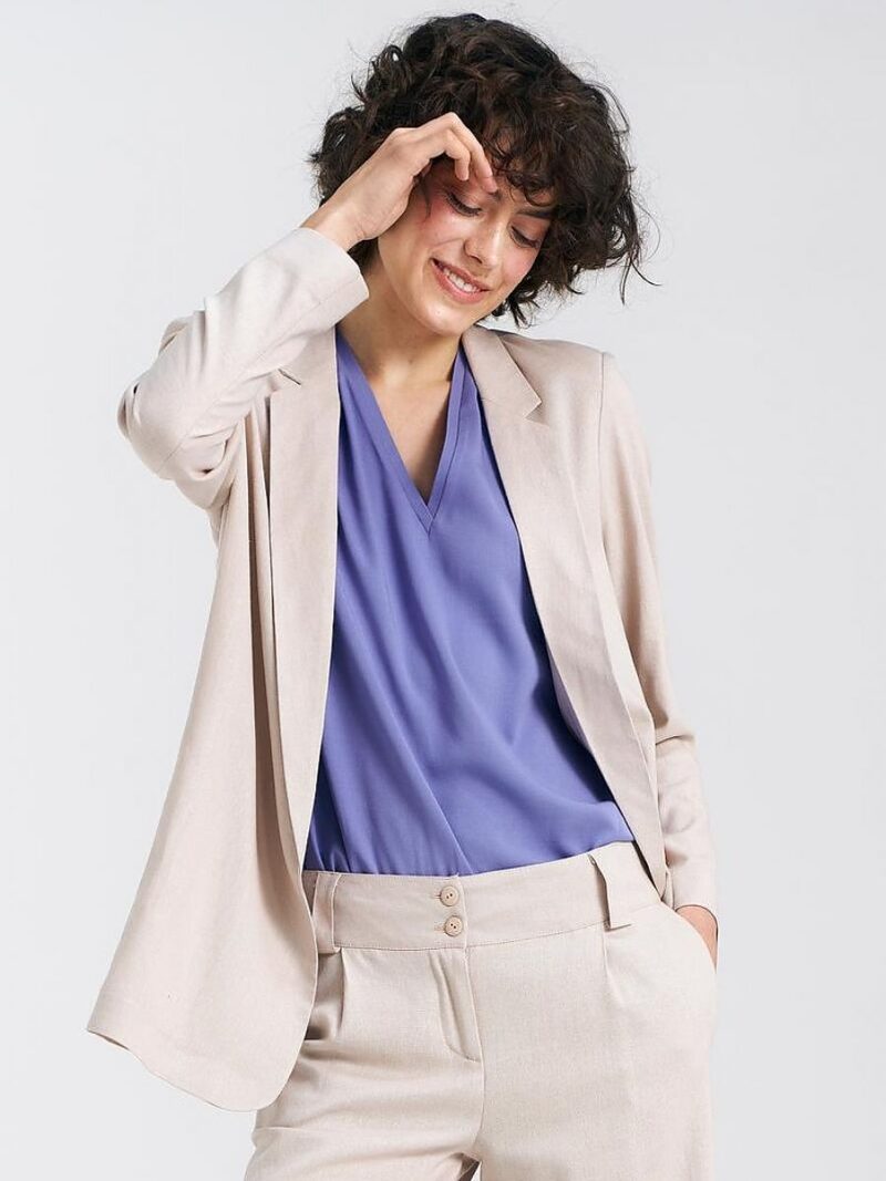 La veste pour femme à la coupe régulière et ample est le choix idéal pour les femmes qui apprécient les vêtements décontractés et confortables. Fabriquée dans un tissu de haute qualité comprenant de la viscose, du lin et du coton, elle offre un confort et une sensation agréable sur la peau. Il se caractérise par ses revers doublés, qui lui confèrent une touche sophistiquée. Sans fermeture, il constitue une pièce de garde-robe confortable et chic, idéale pour les tenues formelles comme pour les tenues plus décontractées. Les épaulettes apportent structure et subtilité à la silhouette, créant un look harmonieux. Cette veste n’est pas doublée, ce qui la rend légère et idéale pour les jours les plus chauds. Les coutures intérieures sont soigneusement passepoilées, ce qui souligne la grande qualité de fabrication et le souci du détail. C’est un excellent choix pour les femmes qui apprécient à la fois l’élégance et le confort au quotidien.