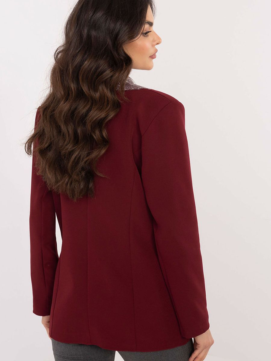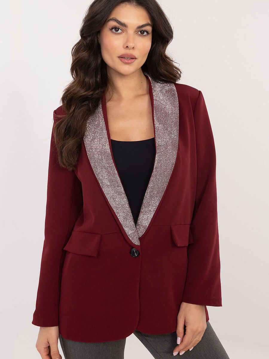 Élégante veste pour femme avec revers décoratifs et coussins cousus, parfaite pour les occasions formelles et les sorties en soirée. Fabriquée dans un tissu contenant du polyester et de la viscose, elle offre un grand confort et une excellente coupe. La longueur standard et la coupe classique à un bouton lui confèrent un chic intemporel, tandis que les manches longues et la doublure soigneusement confectionnée ajoutent au confort. Les revers ornés de strass subtils ajoutent une touche unique et une touche de glamour, en parfaite adéquation avec le style élégant de la veste.