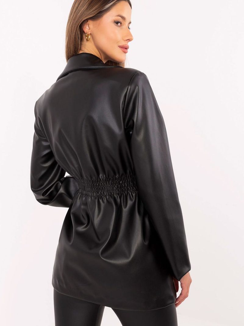 L’élégant blazer en éco-cuir pour femme est une pièce unique de la garde-robe qui allie classicisme et modernité. Fabriqué à partir d’un mélange durable de polyester et de polyuréthane, il est extrêmement élégant tout en étant pratique et facile à entretenir. Grâce à la doublure, il offre un confort lors des journées plus froides, ce qui en fait le choix idéal pour l’automne, l’hiver et le printemps. Le blazer de longueur standard se distingue par ses larges revers, qui apportent une touche chic et intemporelle, et ses épaulettes cousues qui accentuent la silhouette pour un look structuré. La fermeture boutonnée à double boutonnage renforce le caractère élégant de ce modèle, tandis que les plis décoratifs au niveau de la taille affinent optiquement la silhouette, donnant à la veste une expression féminine. C’est le choix idéal pour une variété d’occasions, du style quotidien aux réunions formelles ou aux journées de travail. La veste se marie aussi bien avec des pantalons élégants qu’avec des jeans, ce qui permet de créer une variété d’ensembles élégants.