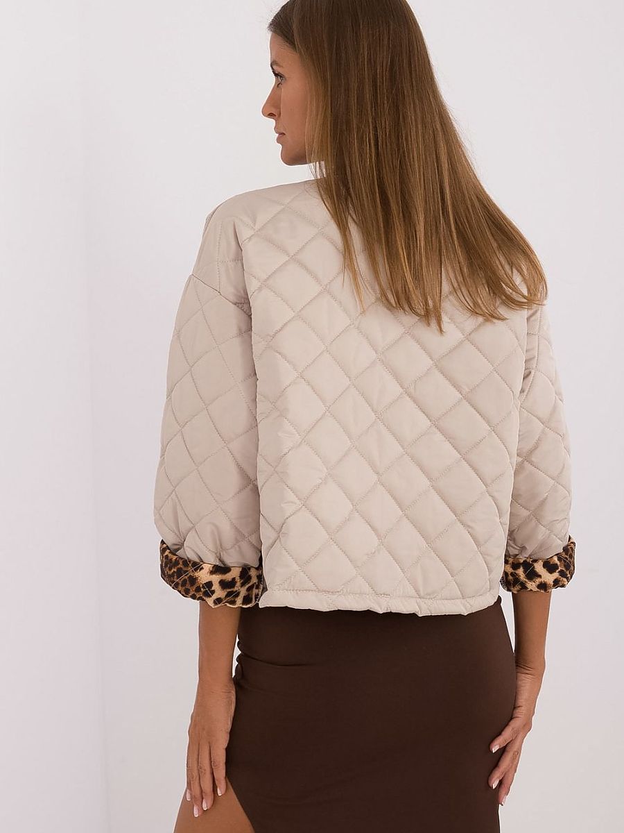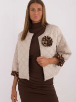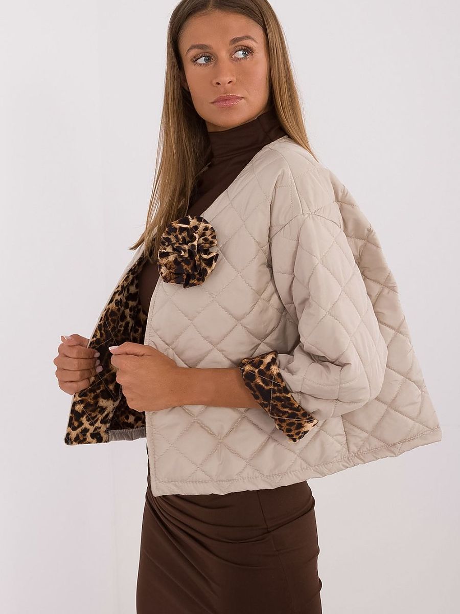 Veste matelassée pour femme, idéale pour la saison de transition (automne, hiver, printemps). Fabriquée en polyester, elle garantit durabilité et confort. La veste a un style décontracté qui conviendra parfaitement aux tenues de tous les jours. Un élément caractéristique est la présence de motifs animaux à la hauteur des poignets ainsi qu’un détail décoratif sur la poitrine, qui ajoutent de la netteté et du caractère unique à l’ensemble. La veste est courte, avec des manches longues, sans doublure, ce qui la rend légère et idéale pour les jours plus chauds. Ce modèle n’a pas de fermeture éclair, ce qui lui donne un look décontracté et moderne.