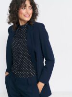 Une veste élégante sans fermeture est un élément important de la garde-robe avec lequel vous pouvez créer un costume féminin moderne. La coupe classique et la couleur de la veste vous permettront de l’utiliser de nombreuses manières. C’est un modèle doublé qui conviendra aux tenues de bureau, mais qui aura également fière allure en version décontractée lorsque vous vous rendez à une réunion informelle.