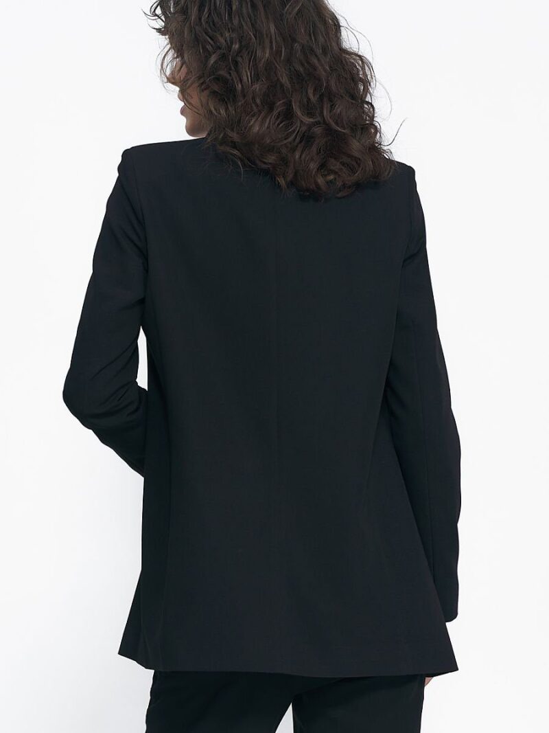 Une veste élégante sans fermeture est un élément important de la garde-robe avec lequel vous pouvez créer un costume féminin moderne. La coupe classique et la couleur de la veste vous permettront de l’utiliser de nombreuses façons. C’est un modèle qui conviendra aux tenues de bureau, mais qui aura également fière allure en version décontractée lorsque vous vous rendez à une réunion informelle.